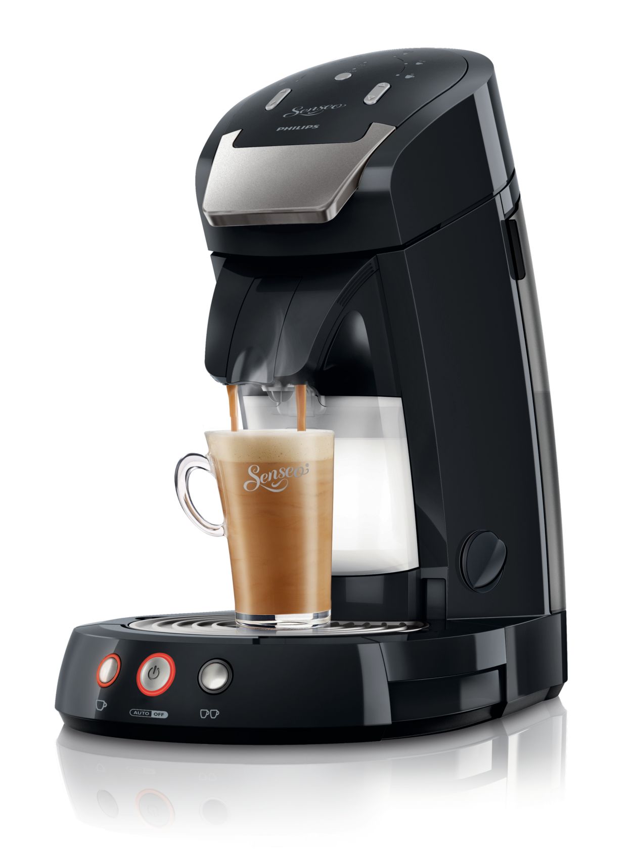 Wählen sie zwischen cappuccino latte macchiato café latte und normalem schwarzem senseo kaffee.